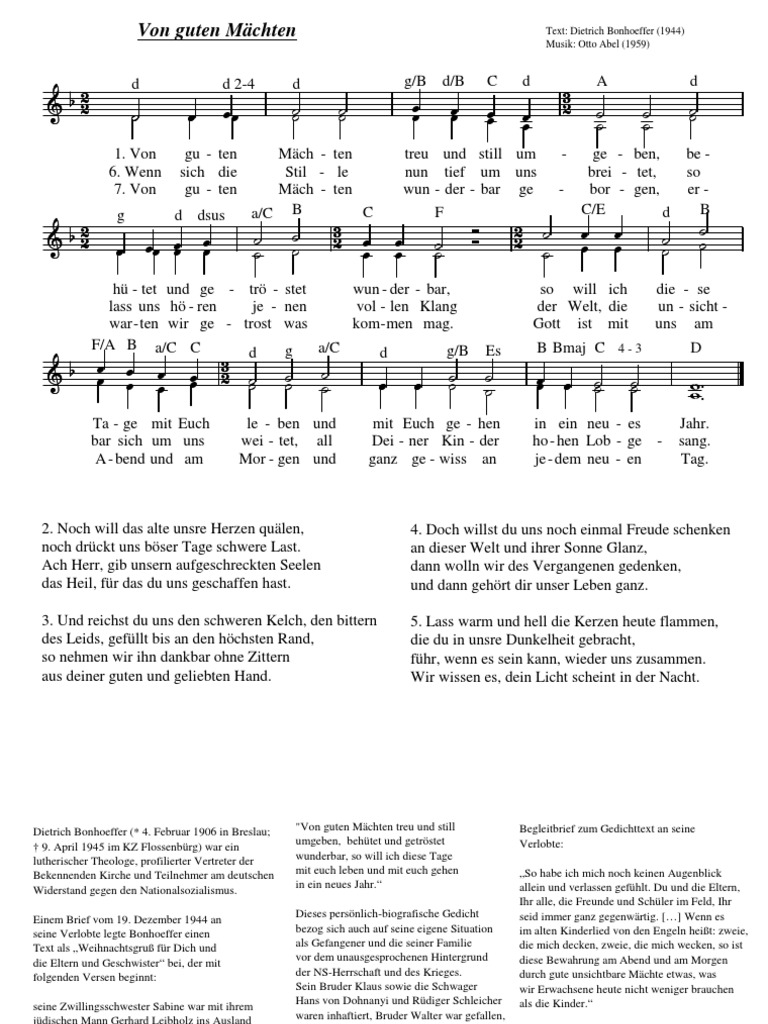 . Download von guten mächten wunderbar geben pdf buch. Insbesondere das Lied von Dietrich Bonhoeffer Von guten Mächten wunderbar geborgen - begeistert. Von guten Mächten wunderbar geborgen Text.
